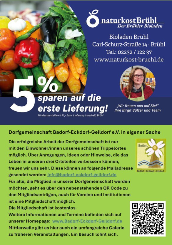 Unterstützung der Dorfgemeinschaft, Spendenlink ( https://www.paypal.com/donate/?hosted_button_id=QQCYXNKNTWM8N ) zu Paypal (auch über QR-Code) oder auch gerne per Banküberweisung: KSK Köln DE 43 3705 0299 0160 2703 14.